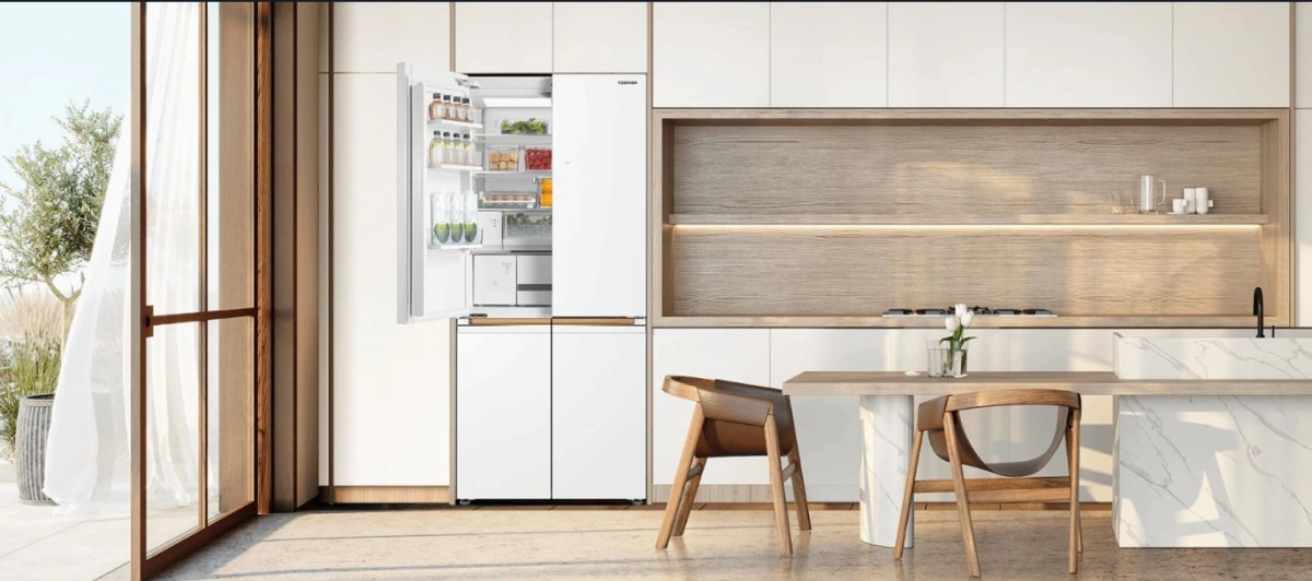 Đồng điệu với triết lý “Hoàn hảo trong thầm lặng”, các thiết bị từ Toshiba Lifestyle như tủ lạnh, máy giặt hay lò vi sóng mang sắc trắng ngà, bạc mờ hay xám khói là lựa chọn lý tưởng. Với thiết kế tối giản, bảng điều khiển ẩn và bề mặt nhám mịn, chúng dễ dàng “tàng hình” vào không gian nội thất. Đặc biệt, công nghệ vận hành êm ái, giảm tiếng ồn của Toshiba góp phần duy trì sự tĩnh tại tuyệt đối – yếu tố cốt lõi của một ngôi nhà chuẩn Zen.
