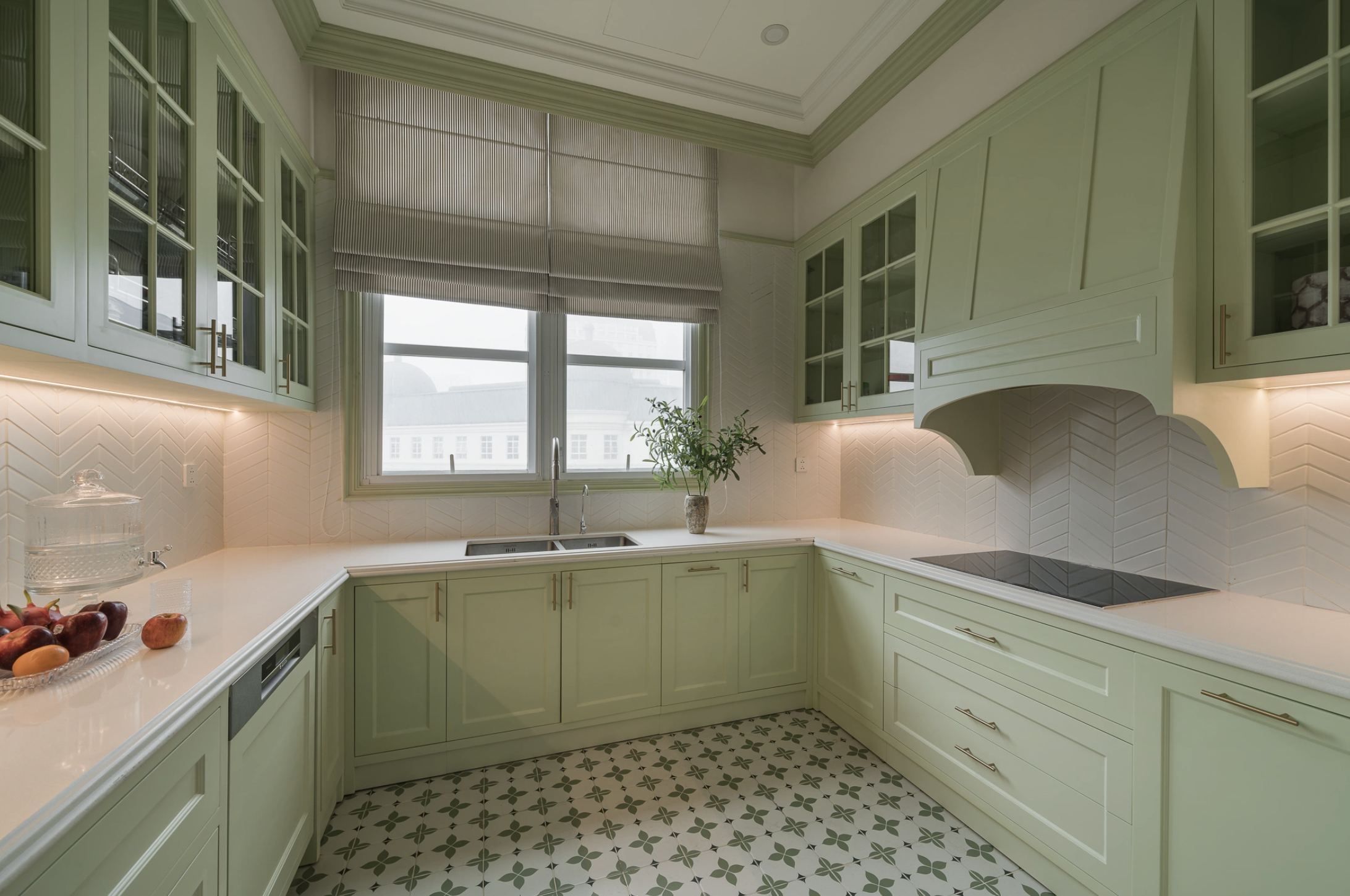 Thiết kế: Chú trọng đường nét, từ những đường cong mềm mại của tay nắm tủ bếp cổ điển đến những khối thẳng tắp của phong cách hiện đại.