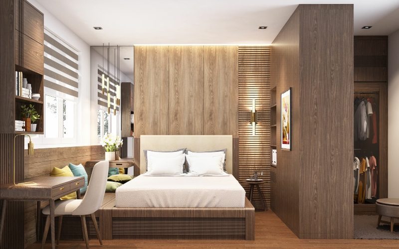 Phong cách Hàn Quốc hướng đến sự tối giản, “less is more”. Thay vì bày biện nhiều đồ đạc, hãy tập trung vào các món đồ nội thất thiết yếu, đa năng và có đường nét gọn gàng. Một chiếc tủ quần áo đơn giản nhưng có nhiều ngăn kệ sẽ giúp không gian trở nên ngăn nắp hơn. Tay nắm tủ quần áo được thiết kế tinh tế, không quá cầu kỳ sẽ làm tăng thêm vẻ thanh lịch, hiện đại. Triết lý này không chỉ giúp căn nhà luôn gọn gàng mà còn tạo ra không gian trống, giúp tâm trí được thư giãn, tránh cảm giác bí bách.