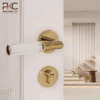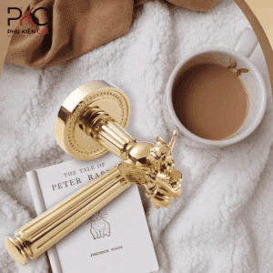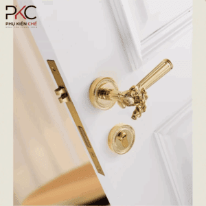 • Chất liệu tổng thể: Đồng– là vật liệu chính cấu tạo nên lõi khóa, lưỡi khóa, tay nắm cửa và tấm ốp, đảm bảo độ bền vượt trội, khả năng chống ăn mòn và giữ được vẻ sáng bóng theo thời gian.