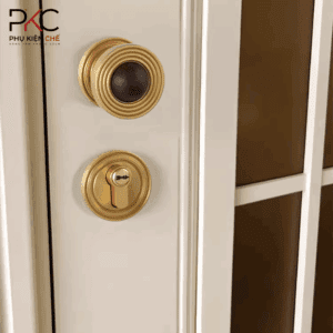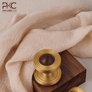 - Thiết Kế Cổ Điển Tinh Tế: Tay nắm dạng tròn cổ điển với các đường nét tiện CNC sắc sảo. Bề mặt màu vàng đồng xước kết hợp với tâm tay nắm màu đen (hoặc vân gỗ óc chó) tạo nên một tổng thể hài hòa, sang trọng và đầy cuốn hút.
