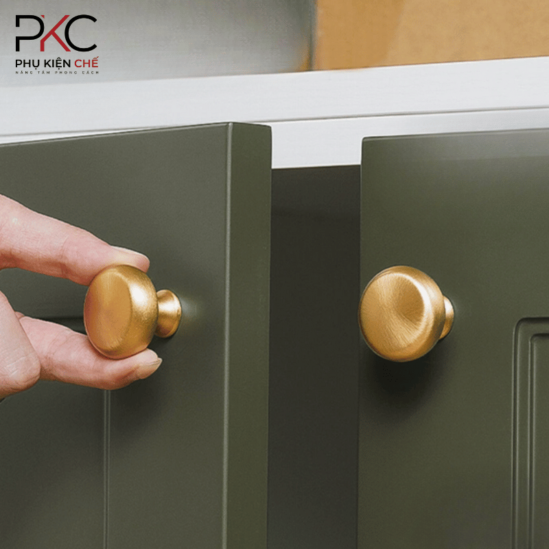 - Thiết kế tối giản, sang trọng: Núm hình tròn với bề mặt được xử lý tinh xảo (như đồng phay xước, đồng mờ…), mang lại vẻ đẹp vượt thời gian, dễ dàng phối hợp với nhiều phong cách nội thất từ cổ điển đến hiện đại.