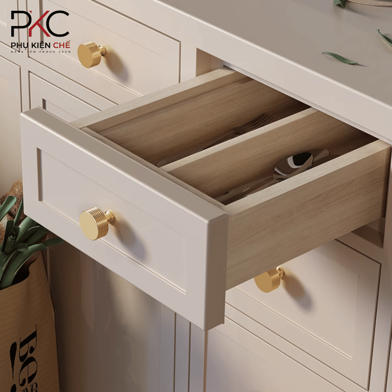 Mẫu núm tủ là một thiết kế tay nắm tủ có thiết kế khá đơn giản. Bề ngoài của tay nắm dạng một thanh vuông nguyên khối được xử lý bo tròn các góc cạnh hiện đại.