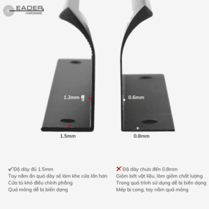 Được chế tạo từ hợp kim nhôm chọn lọc, tay cầm PKC1104 không chỉ đảm bảo độ bền vượt trội mà còn chống lại sự ăn mòn của thời tiết. Bạn hoàn toàn yên tâm sử dụng sản phẩm trong thời gian dài mà không lo bị xuống cấp.