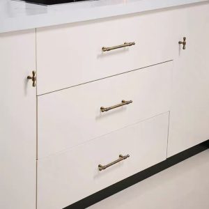 Mẫu tay tủ là một thiết kế tay nắm tủ có thiết kế khá đơn giản. Bề ngoài của tay nắm dạng một thanh vuông nguyên khối được xử lý bo tròn các góc cạnh hiện đại.