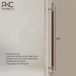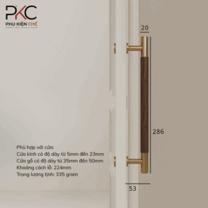 - Thiết kế đa năng, linh hoạt: Dù là cánh cửa kính trong suốt của văn phòng hiện đại (phù hợp độ dày 5-23mm) hay cánh cửa gỗ vững chãi của biệt thự, căn hộ sang trọng (phù hợp độ dày 35-50mm), PKC119 đều hoàn hảo. Với các tùy chọn tay nắm đơn hoặc đôi, bạn có thể dễ dàng tạo nên sự đồng bộ hoặc điểm nhấn cá nhân.