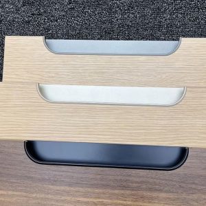 Mẫu tay tủ là một thiết kế tay nắm tủ có thiết kế khá đơn giản. Bề ngoài của tay nắm dạng một thanh vuông nguyên khối được xử lý bo tròn các góc cạnh hiện đại.