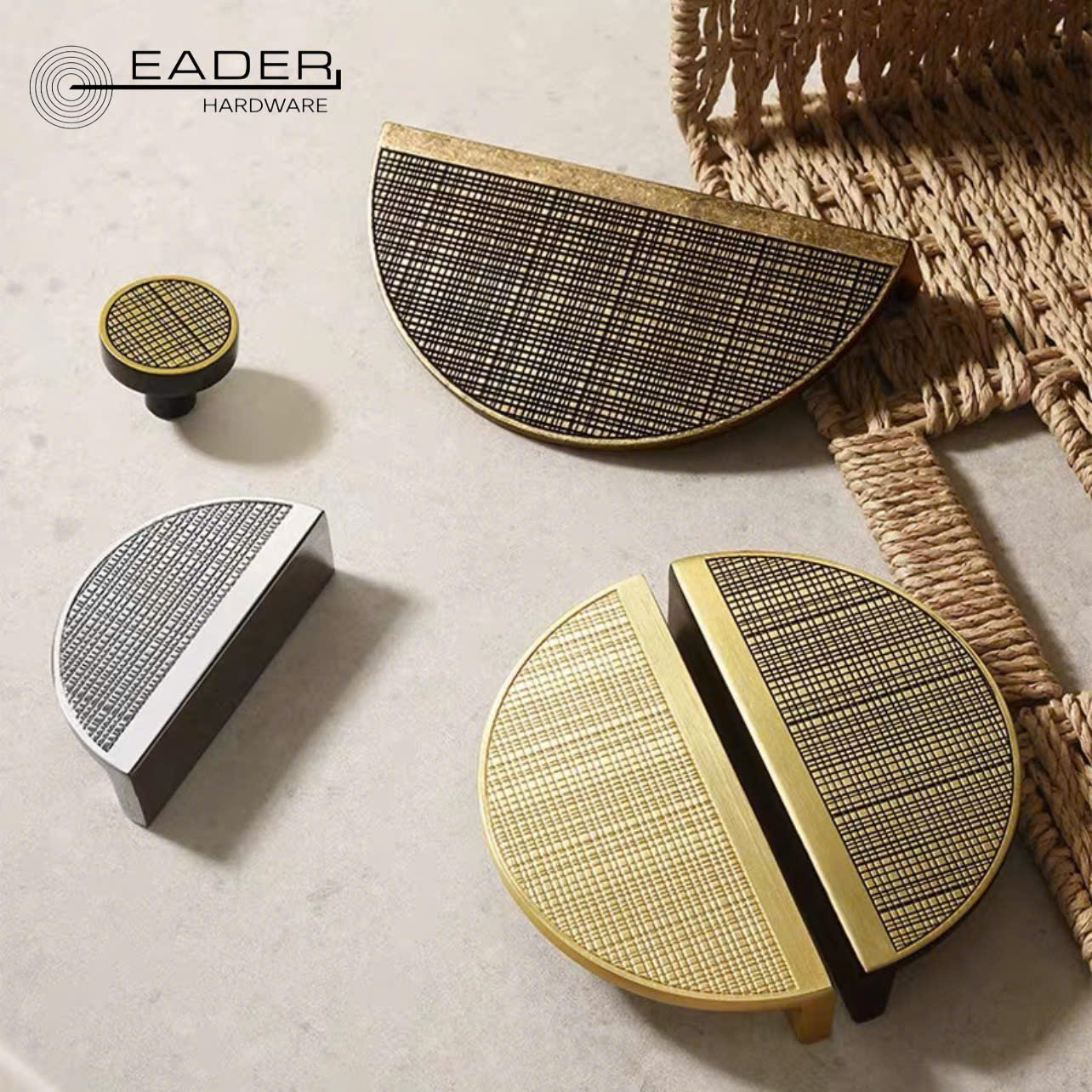 Mang đến làn gió mới cho không gian nội thất với thiết kế Tay nắm bán nguyệt Mã 2522. Sự kết hợp hoàn hảo giữa độ bền của kim loại và vẻ đẹp tinh tế của họa tiết mô phỏng chất liệu vải dệt (textile) hoặc đan cói tự nhiên. Đây là điểm nhấn đắt giá cho các thiết kế nội thất theo phong cách Indochine, Japandi, Modern Luxury hay Vintage.