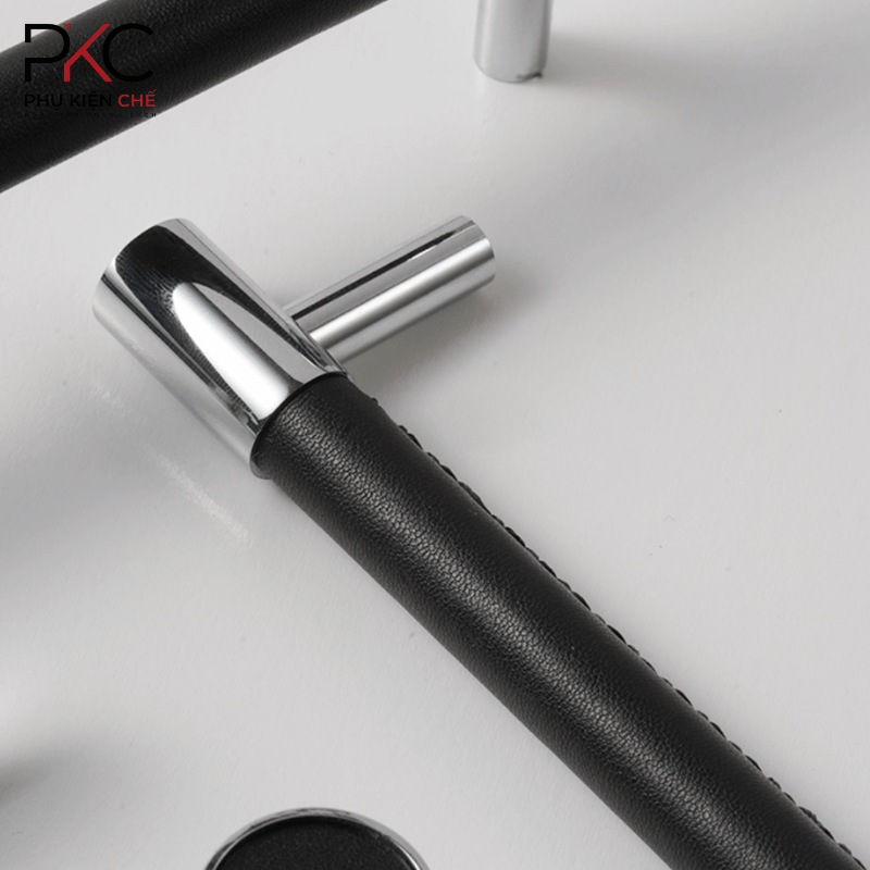 Hãy là người đầu tiên nhận xét “Tay Nắm Tủ Bọc Da Đen & Đồng Mạ Bạc PKC176”
