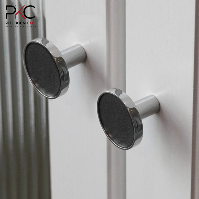 Tay Nắm Tủ Bọc Da Đen & Đồng Mạ Bạc PKC176