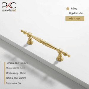 PKC7039 là mẫu tay nắm tủ cao cấp mang phong cách Châu Âu cổ điển, nổi bật với đường nét uốn lượn mềm mại và tông màu vàng sang trọng. Đây là lựa chọn lý tưởng cho các không gian nội thất đậm chất tân cổ điển, vintage hoặc những thiết kế yêu cầu sự tinh tế và quý phái.
