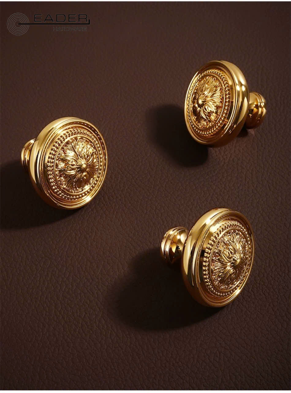 Tay nắm tủ dạng núm tròn mạ vàng cao cấp PKC 6311 là sự lựa chọn hoàn hảo để nâng cấp giá trị thẩm mỹ cho các hệ tủ gỗ, mang lại phong cách Châu Âu sang trọng và tinh tế.