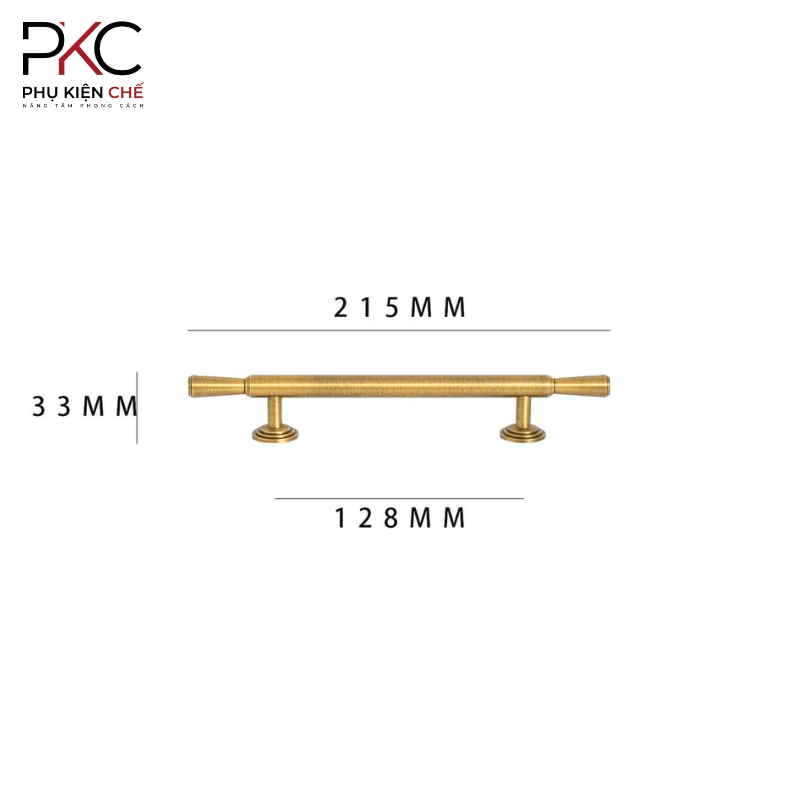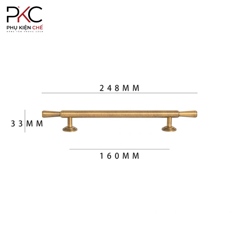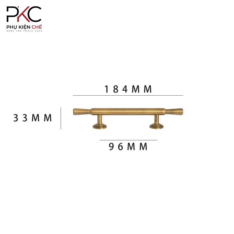 • Tay nắm dài 2 lỗ bắt vít với 3 kích thước tâm lỗ: 96 mm (dài tổng 184 mm), 128 mm (dài tổng 215 mm), 160 mm (dài tổng 248 mm), chiều cao tay nắm 33 mm – cầm nắm chắc tay, thao tác mở tủ rất nhẹ.