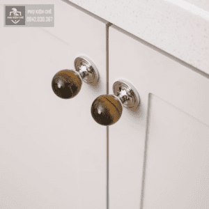 Mặt núm: Làm từ đá tự nhiên, tạo nên vẻ đẹp độc đáo và sang trọng, với đá hổ phách (Tiger Eye) mang đến vẻ đẹp mạnh mẽ, sang trọng.