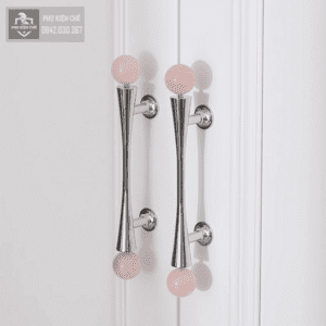 Tay nắm tủ đồng và pha lê hồng PKC037 sở hữu thiết kế tinh xảo, lấy cảm hứng từ phong cách cổ điển Pháp, tạo nên sự hòa quyện hoàn hảo giữa nét đẹp truyền thống và sự sang trọng hiện đại. Sự kết hợp giữa đồng thau mạ chrome sáng bóng và mặt đá tự nhiên giúp sản phẩm trở thành điểm nhấn đẳng cấp cho mọi không gian nội thất.