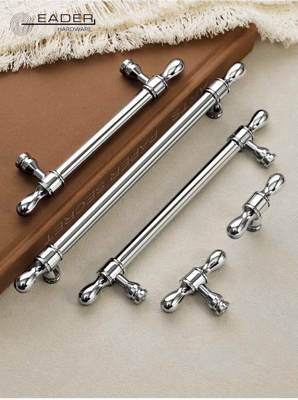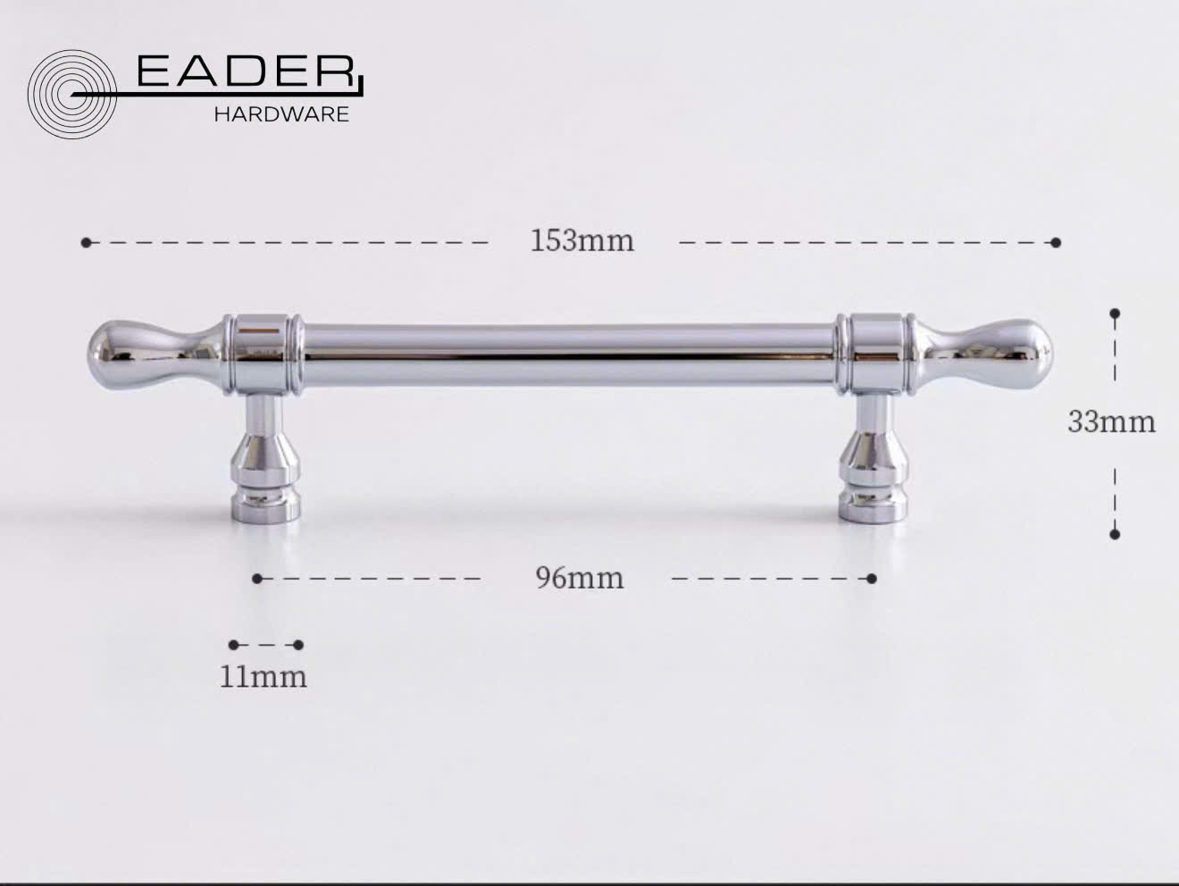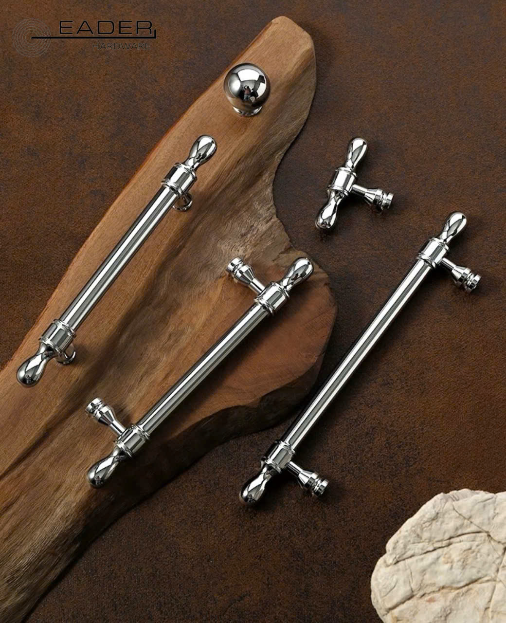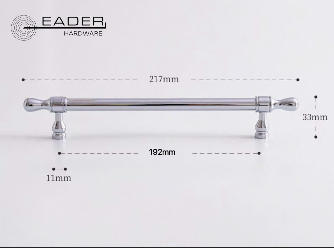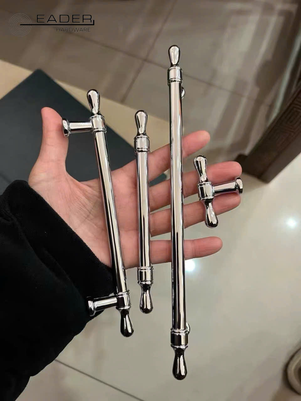 Khám phá dòng tay nắm tủ Eader Hardware mạ Chrome sáng bóng. Thiết kế tinh tế, đa dạng kích thước (96mm – 192mm), độ bền cao. Phù hợp cho tủ bếp, tủ quần áo cao cấp.