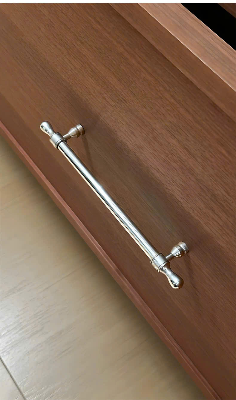 Tay nắm tủ Eader Hardware dòng F6302 là sự kết hợp hoàn hảo giữa nét tinh tế của phong cách tân cổ điển và sự bóng bẩy của chất liệu hiện đại. Với lớp mạ Chrome (Crom) sáng gương, sản phẩm không chỉ là phụ kiện công năng mà còn là điểm nhấn trang sức cho mọi hệ tủ trong gia đình.