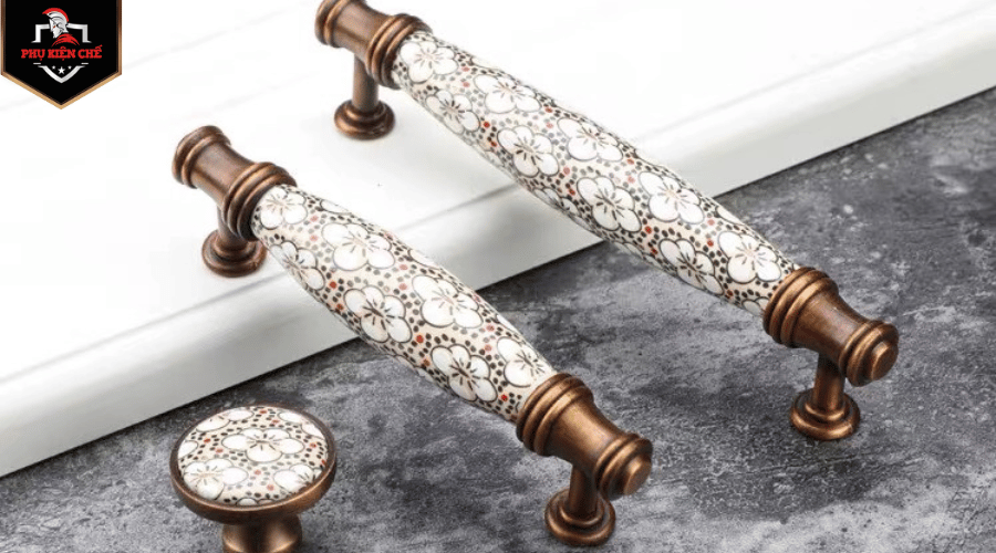 27. Tay nắm cửa sắt kết hợp gốm, mang vẻ đẹp truyền thống.