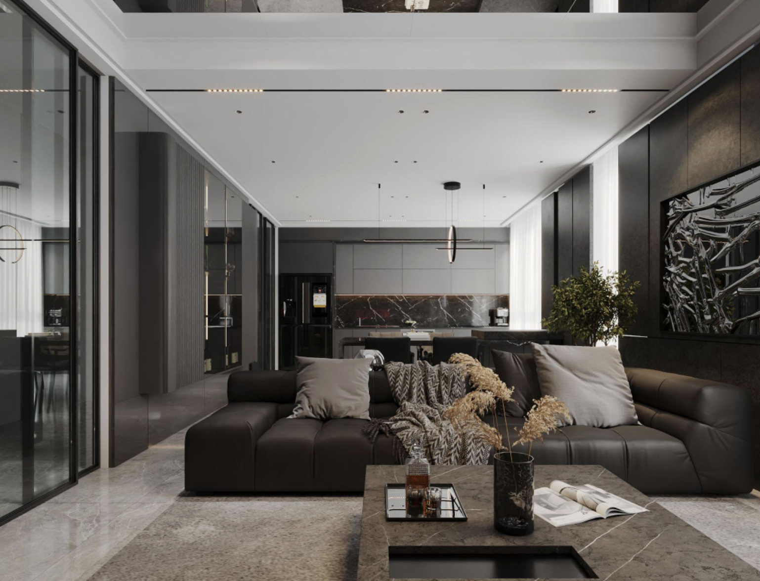 Nếu bạn yêu thích sự sang trọng, phong cách Luxury là lựa chọn hoàn hảo. Điểm nhấn nằm ở chất liệu cao cấp như đá marble, gỗ óc chó, da thật, và kim loại mạ vàng.